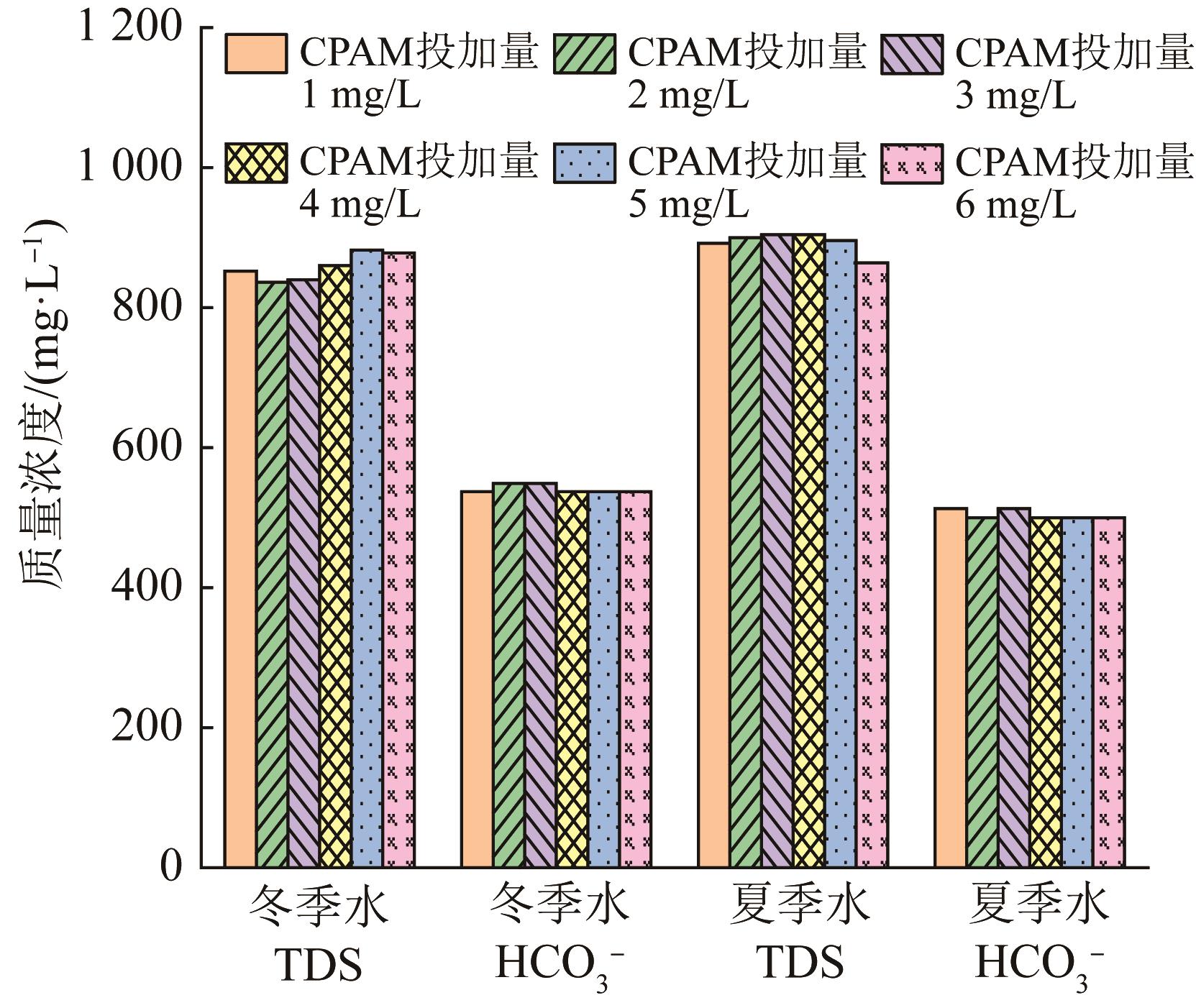 | 图5 200 mg/L PAC+CPAM联合投加对TDS含量及HCO3-浓度的影响 |