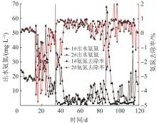 将稀释后的进水通过蠕动泵泵入相应SSSAB反应器中,根据进水输入流速及反应器的处理效果将整个周期划分为启动期、稳定期,分别对2个阶段的数据进行分析。