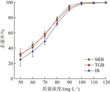 杀菌除氧剂对垢层SRB、TGB和IB的杀菌率随DDAC质量浓度的变化