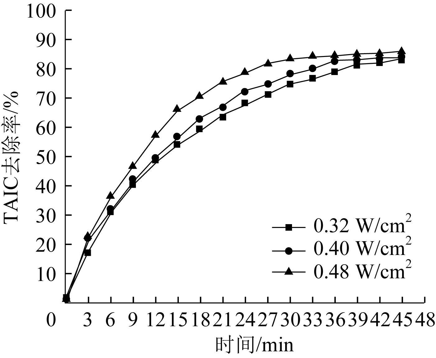 | 图2 单位面积有效放电功率对TAIC去除效果的影响 |