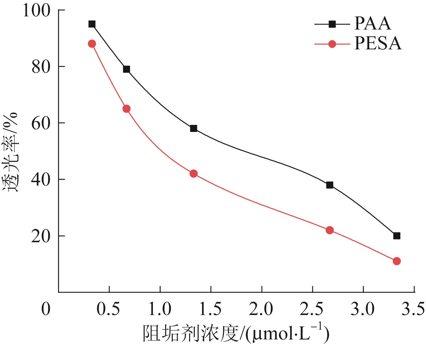 | 图4 不同浓度阻垢剂对Fe2O3悬浮液透光率的影响 |