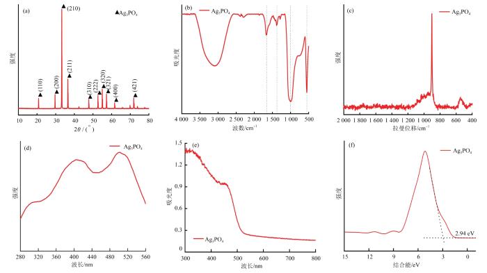 为分析Ag3 PO4 的结构组成及性能,采用多种表征手段进行分析,结果见图2 。
