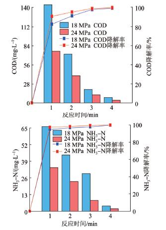 | Fig. 3 Changes of COD and NH3-N at different reaction times of two states |