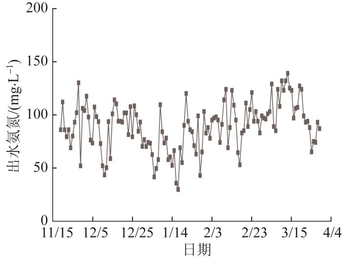 由图5可知,改造后,出水氨氮较之前增加近1倍,基本在29~139 mg/L,但这部分氨氮能够在后续的生化处理中取得较好的处理效果,使最终出水氨氮达标。