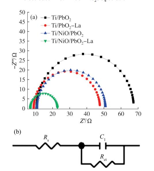 | Fig. 7 AC impedance curves and equivalent circuit of different electrodes in 0.1 mol/L Na2SO4 solution |